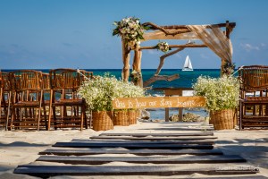 Una hermosa recepción a la orilla de la playa en una divina locación privada, Anna y Doug celebraron su ceremonia del vino, con una bella decoración inspirada en detalles rústicos con viñedo.