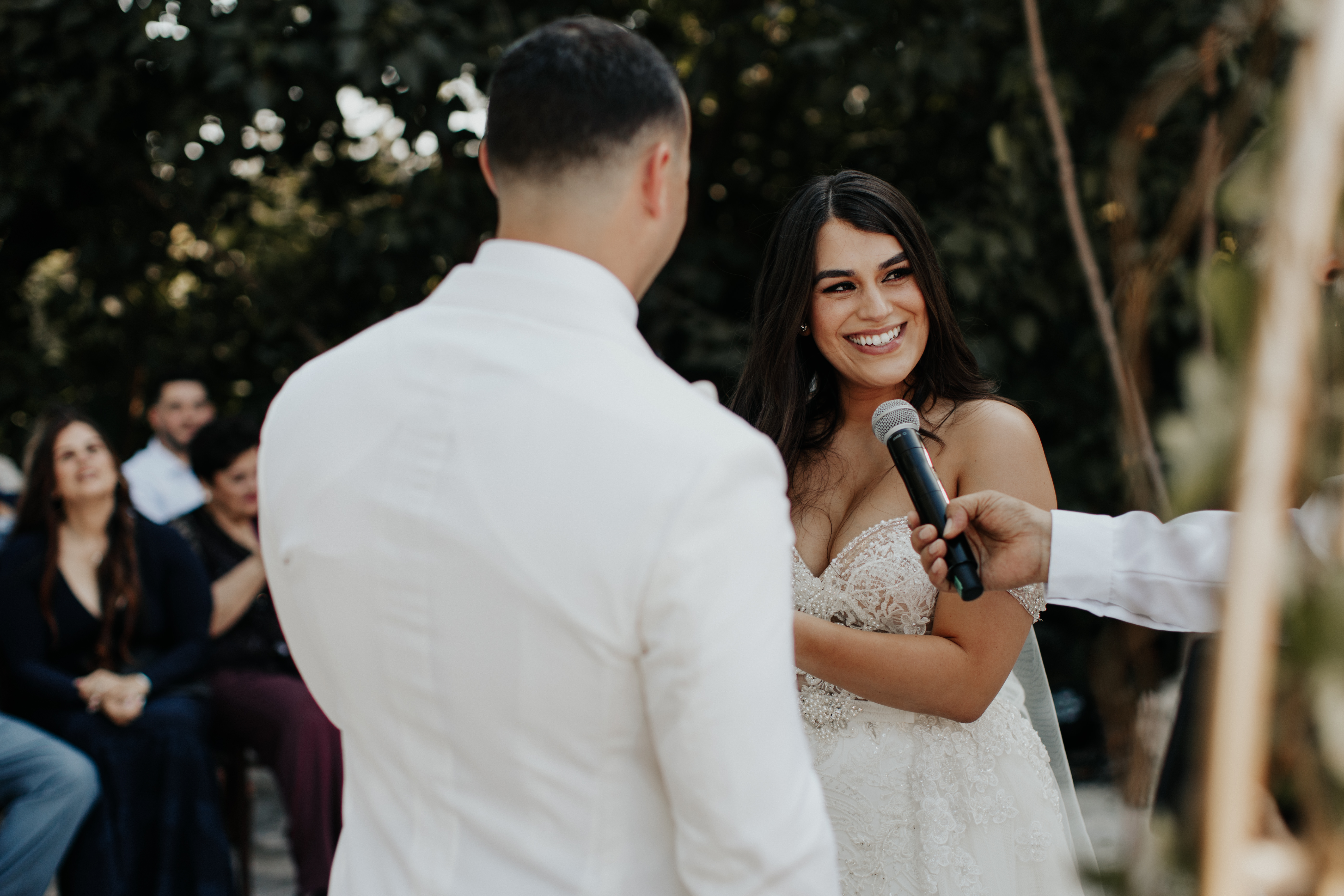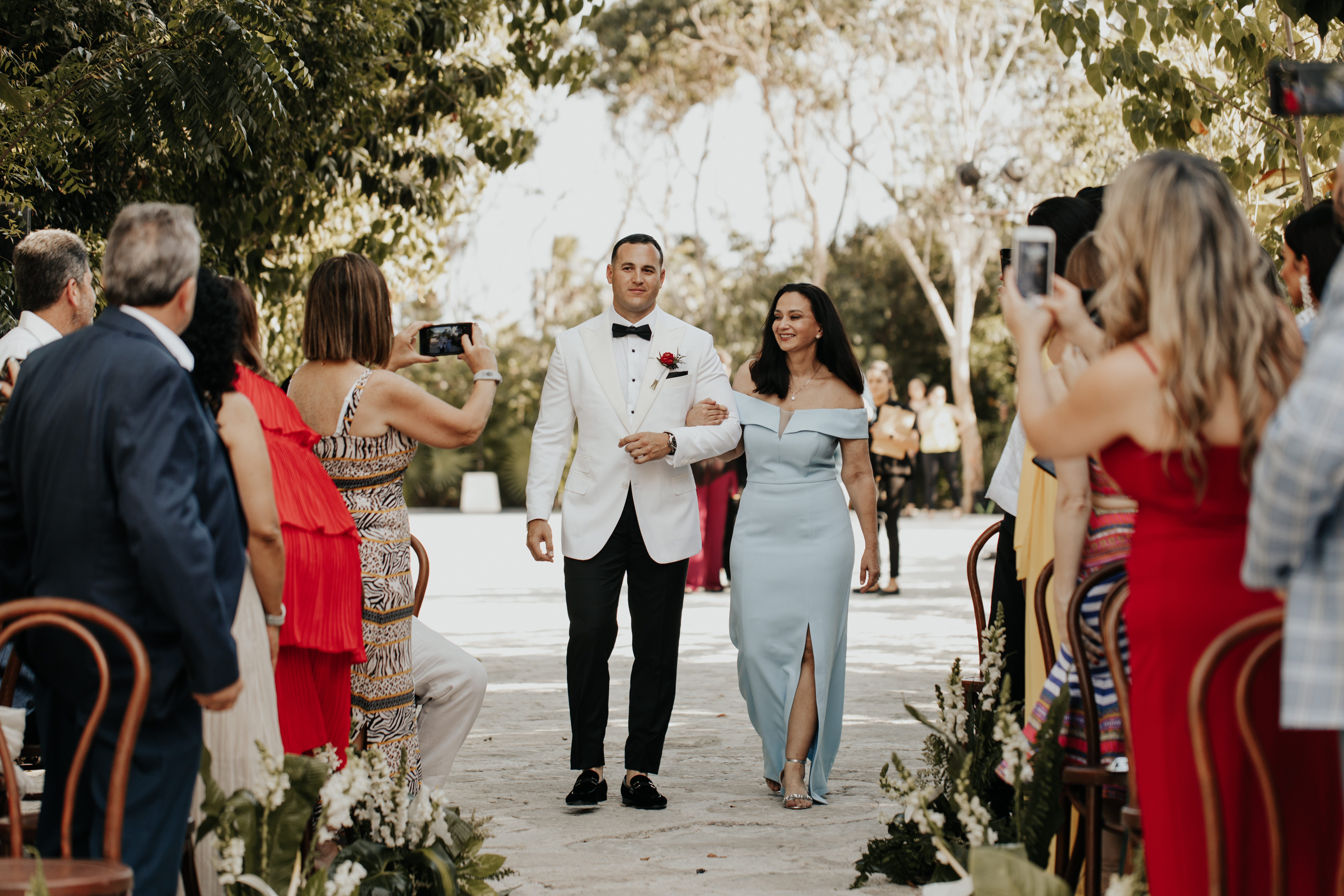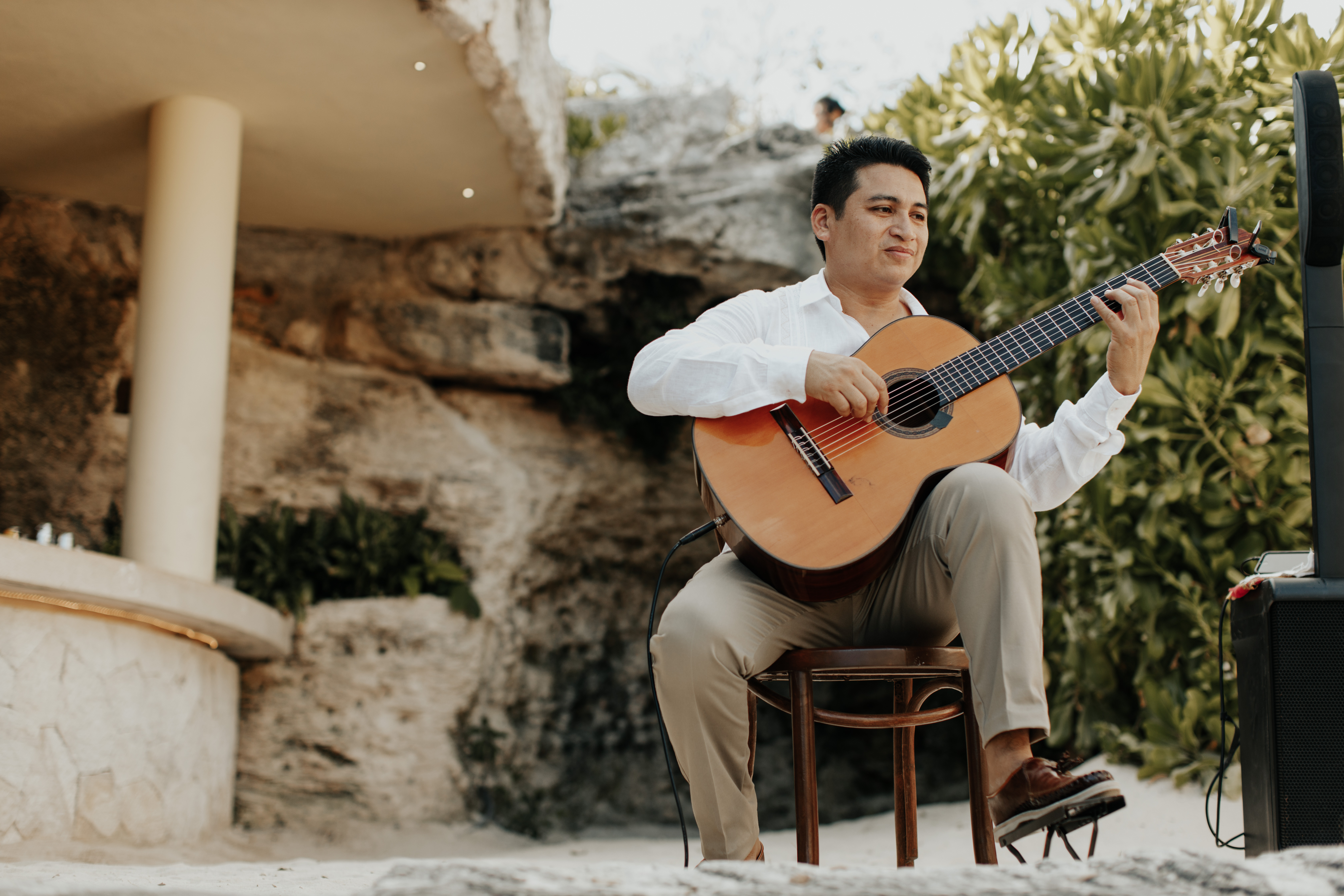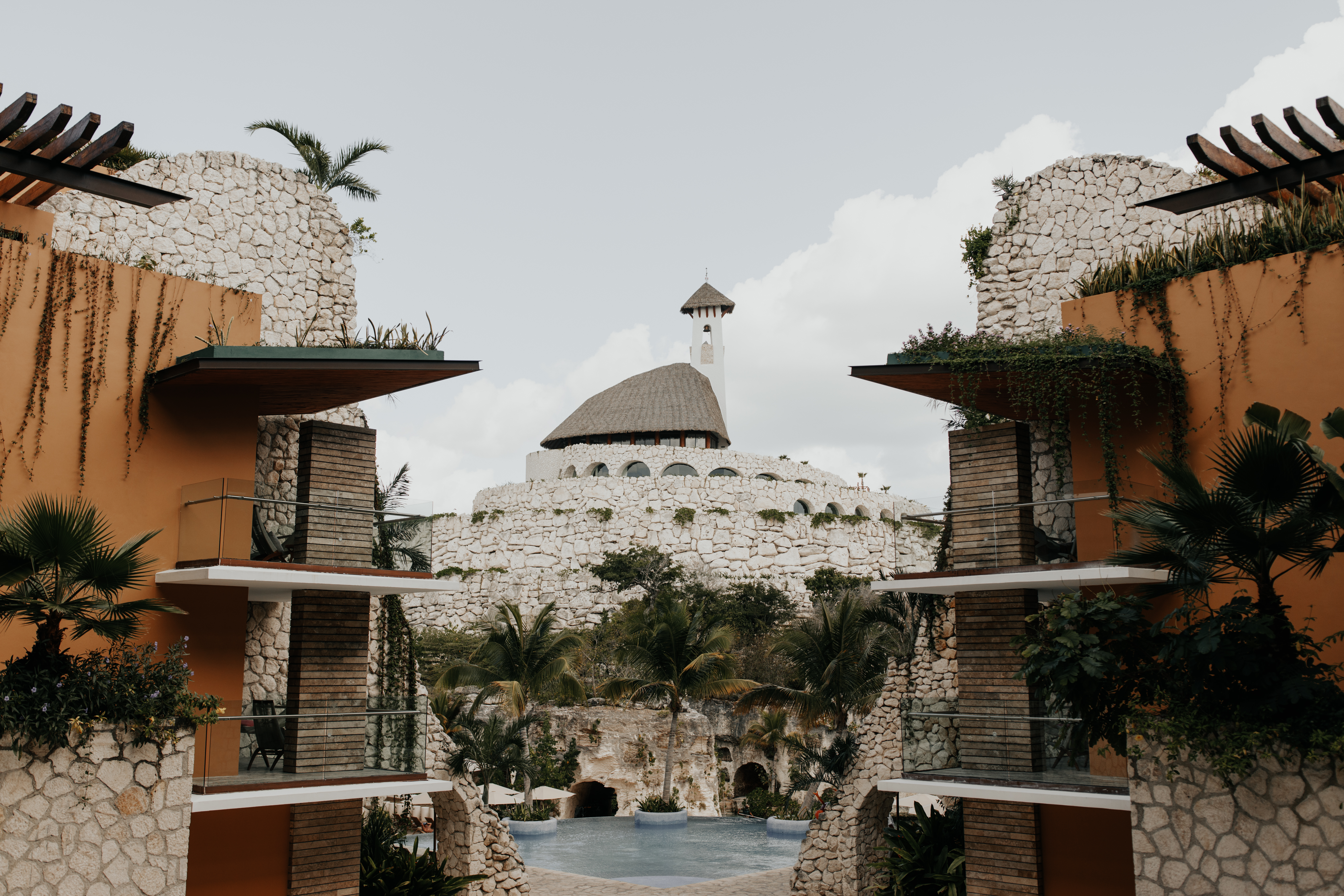 Al llegar el gran día, nuestra novia optó por llevar su cabello suelto en ondas, maquilla y peinado por Tania Tagle; y el estilo que le dio a la boda fue un toque tropical con estilo romántico que combinaba perfectamente con la ceremonia en la bella Xplanada Xpiral de piedra de pirámide y los toques de calidez en la deslumbrante recepción en Cuevitas.