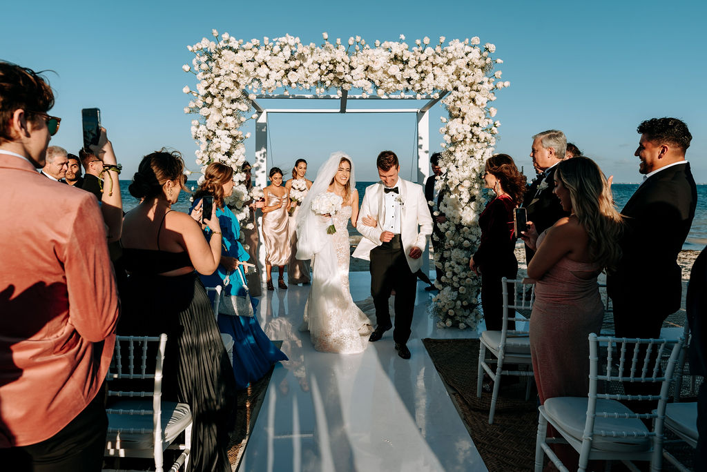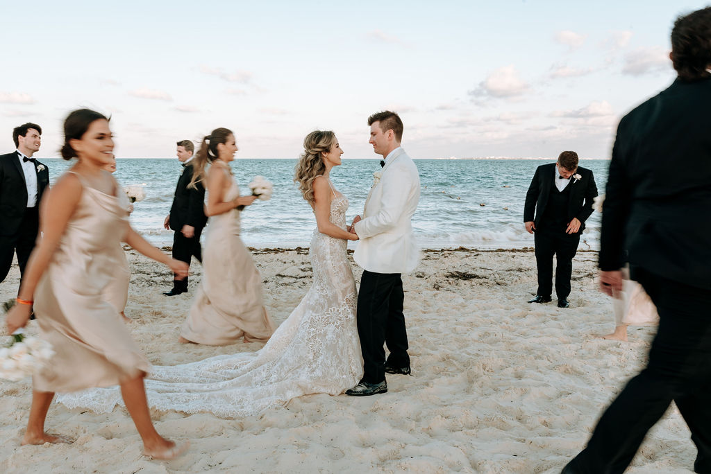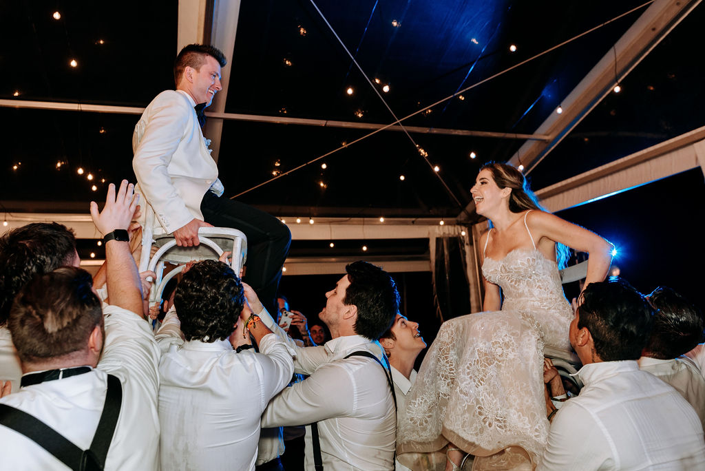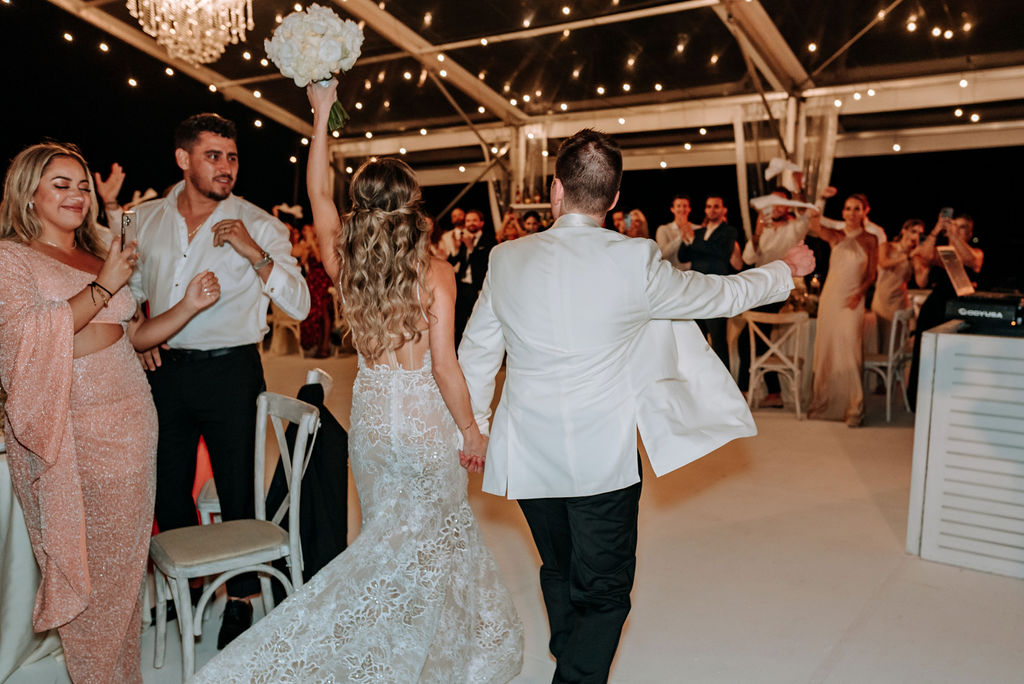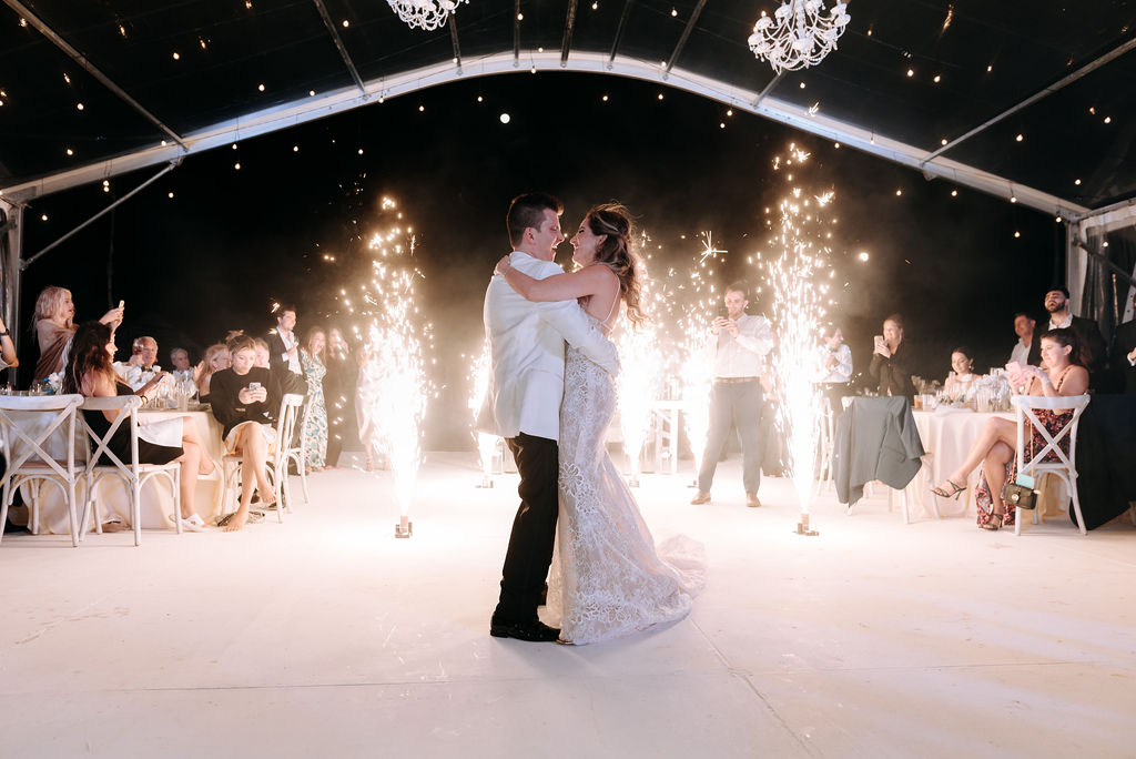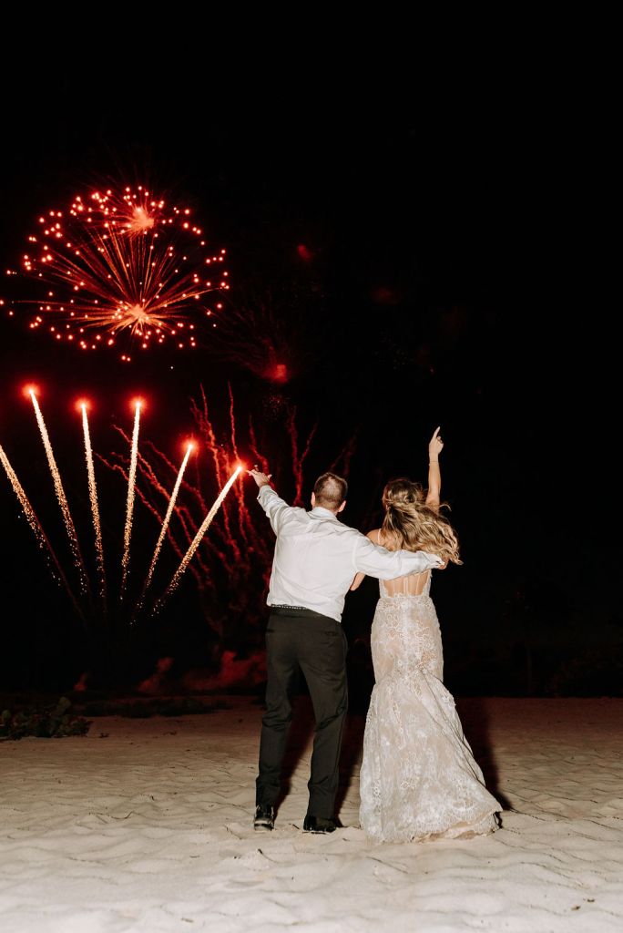 They surprise their guests with a margarita station and the arrival during the cocktail hour, live saxophonist and a great dinner for the reception, and for the gran finale, fireworks!