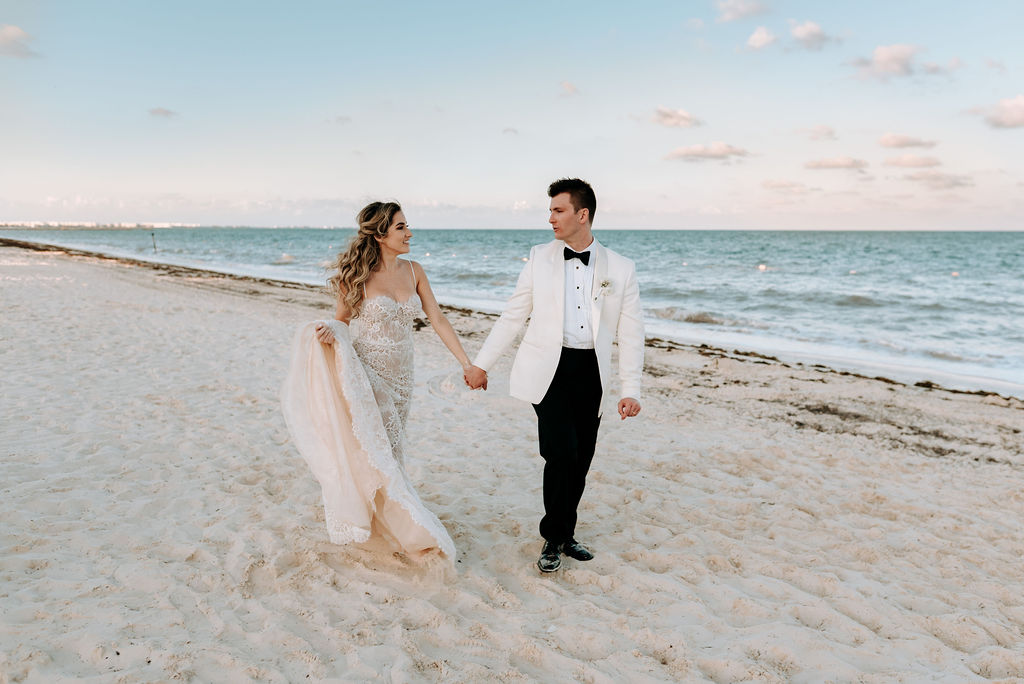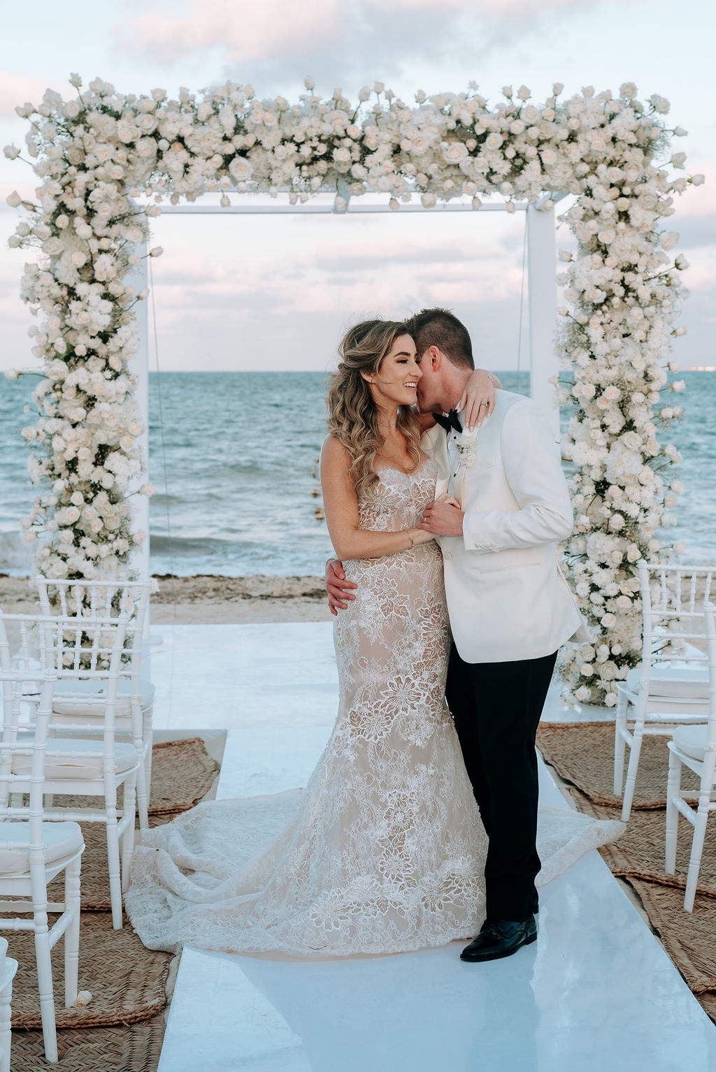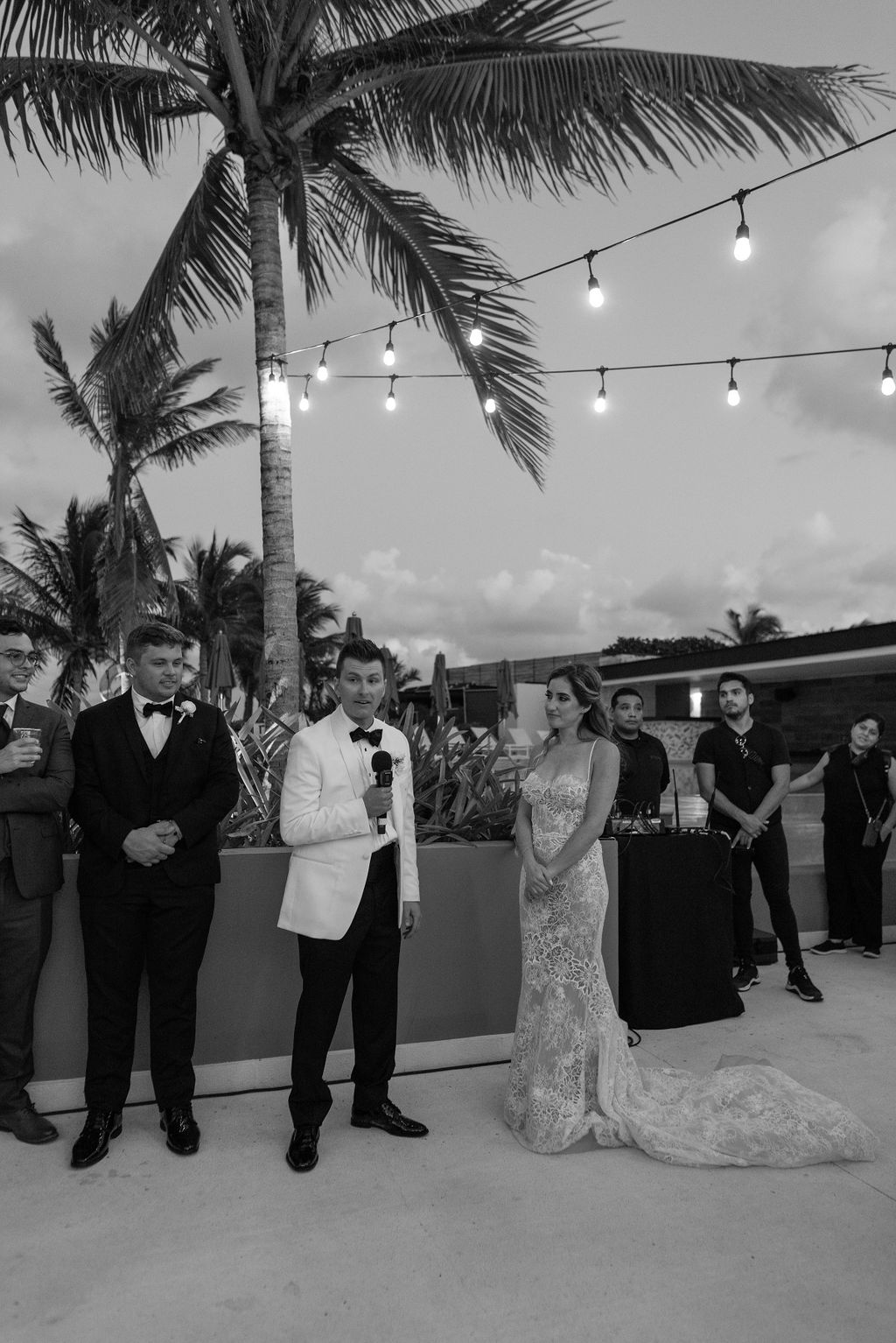 Sandra & Taylor, say Yes in the beautiful resort Atelier Playa Mujeres, they have a lot of fun planning a fiesta mexicana for the welcome of their guests and a elegant, chic and classic reception beach front with a lovely tent!