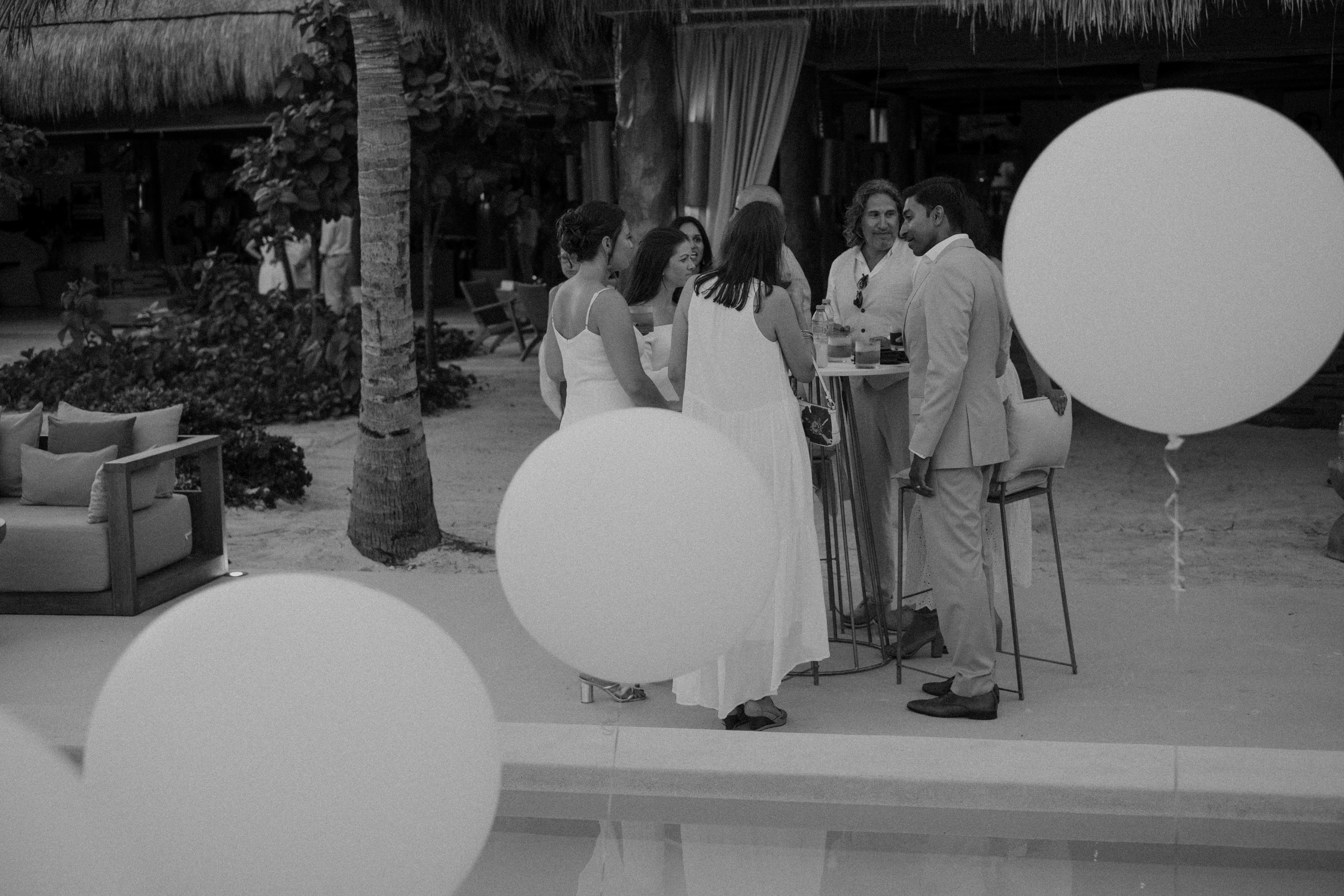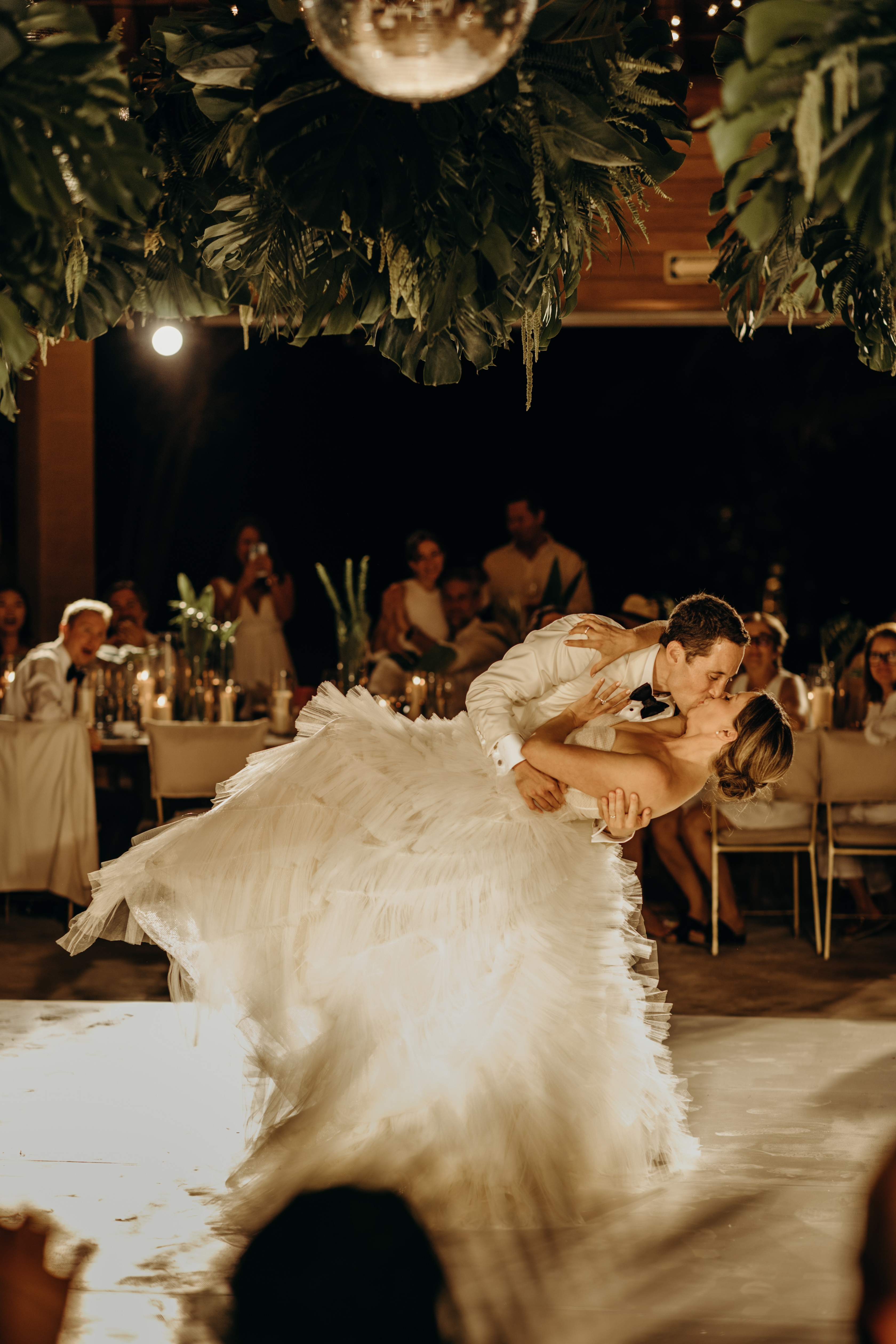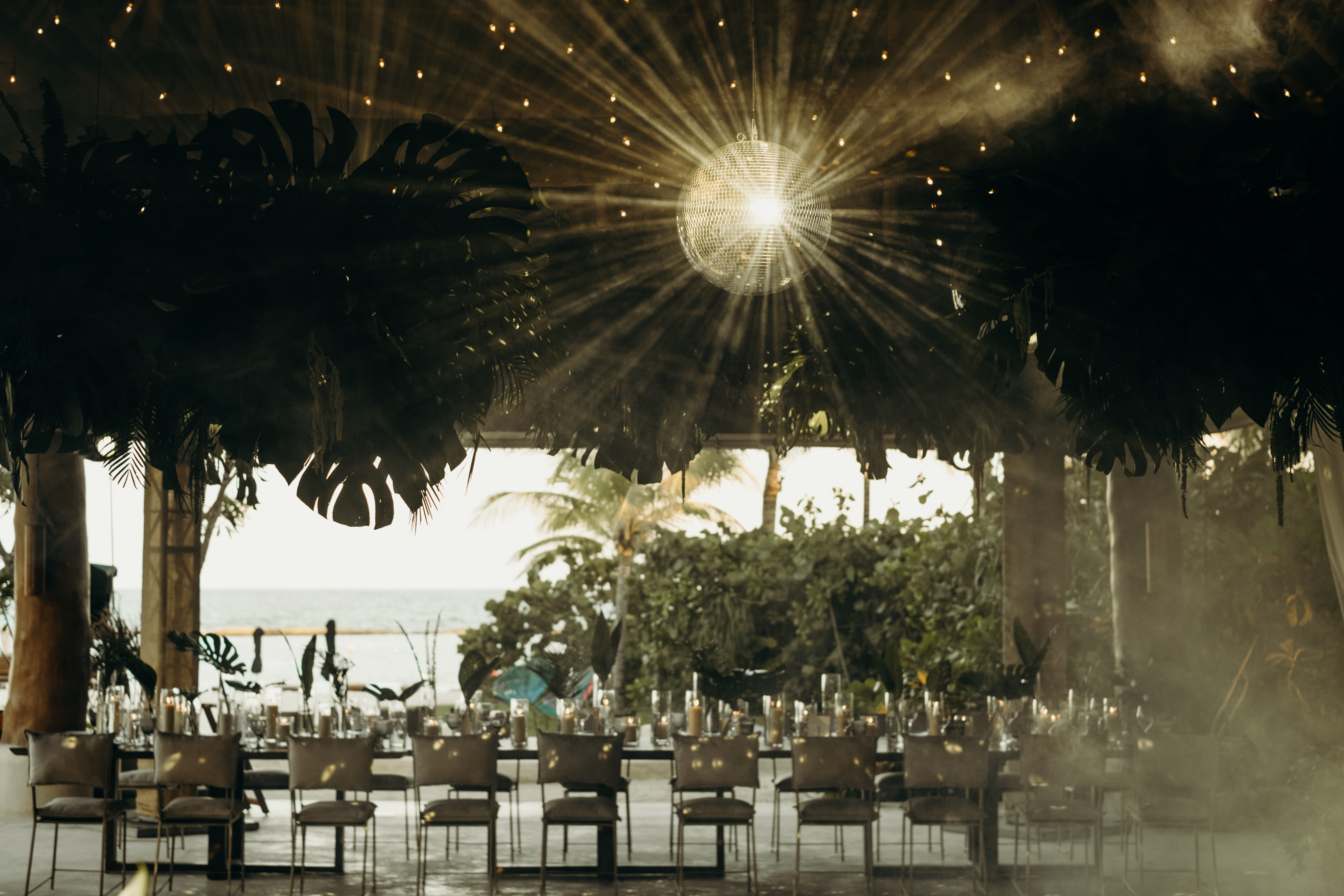 The ceremony was in the garden with partial view to the lagoon, and the Palapa “Aqui me quedo” was transformed into a beautiful reception with a lot of candles, jungles vibes, disco ball and chic dinner with full of details!