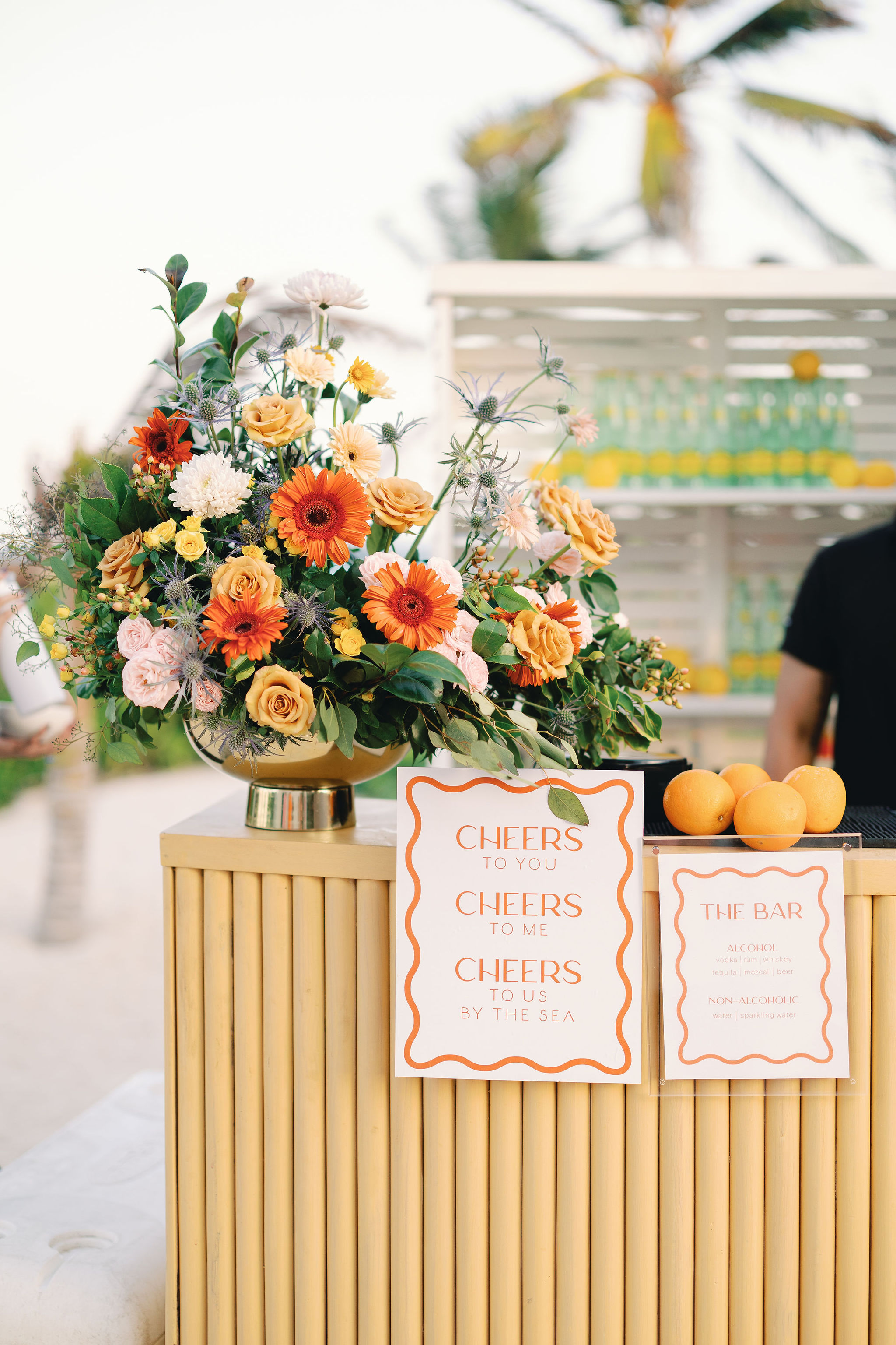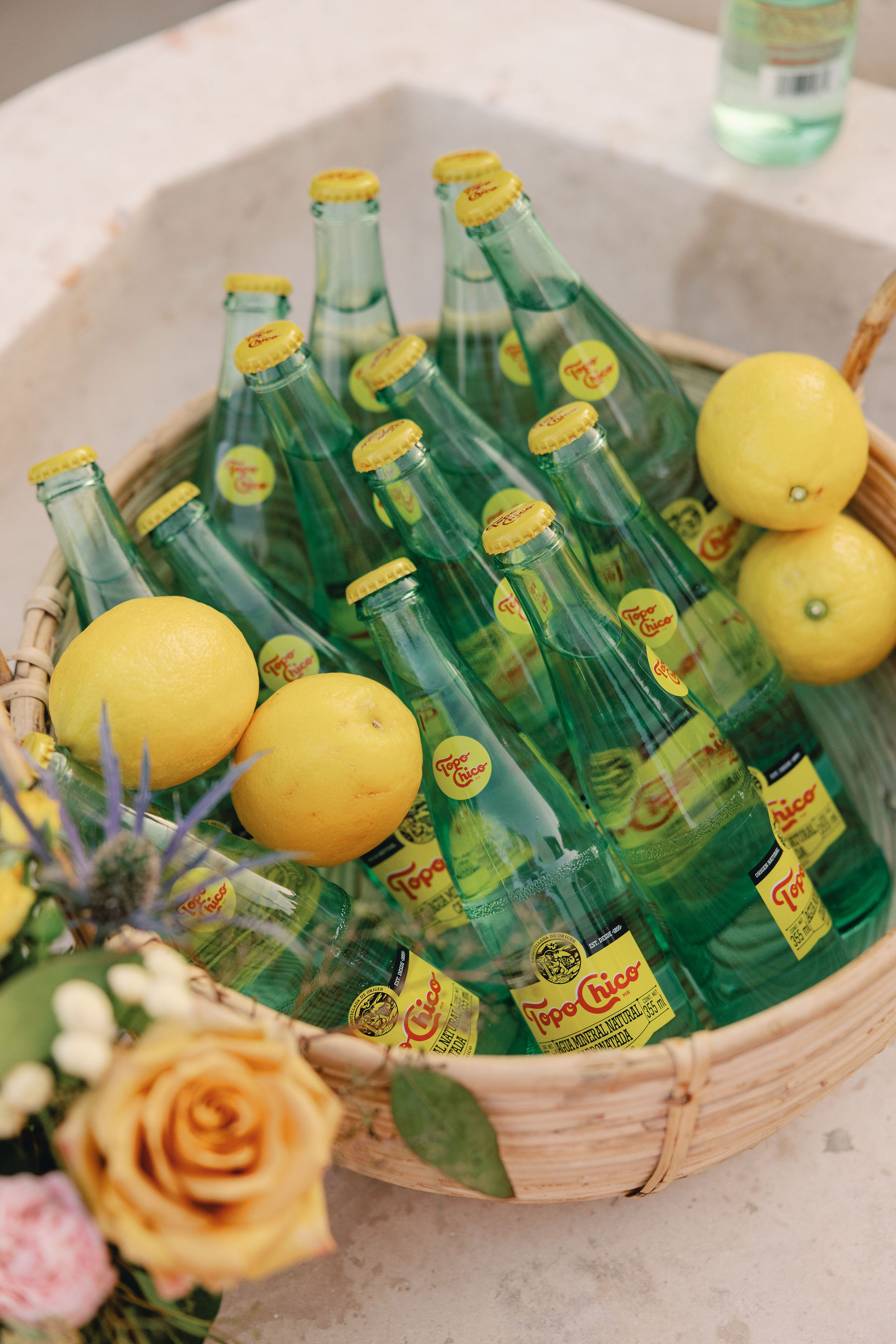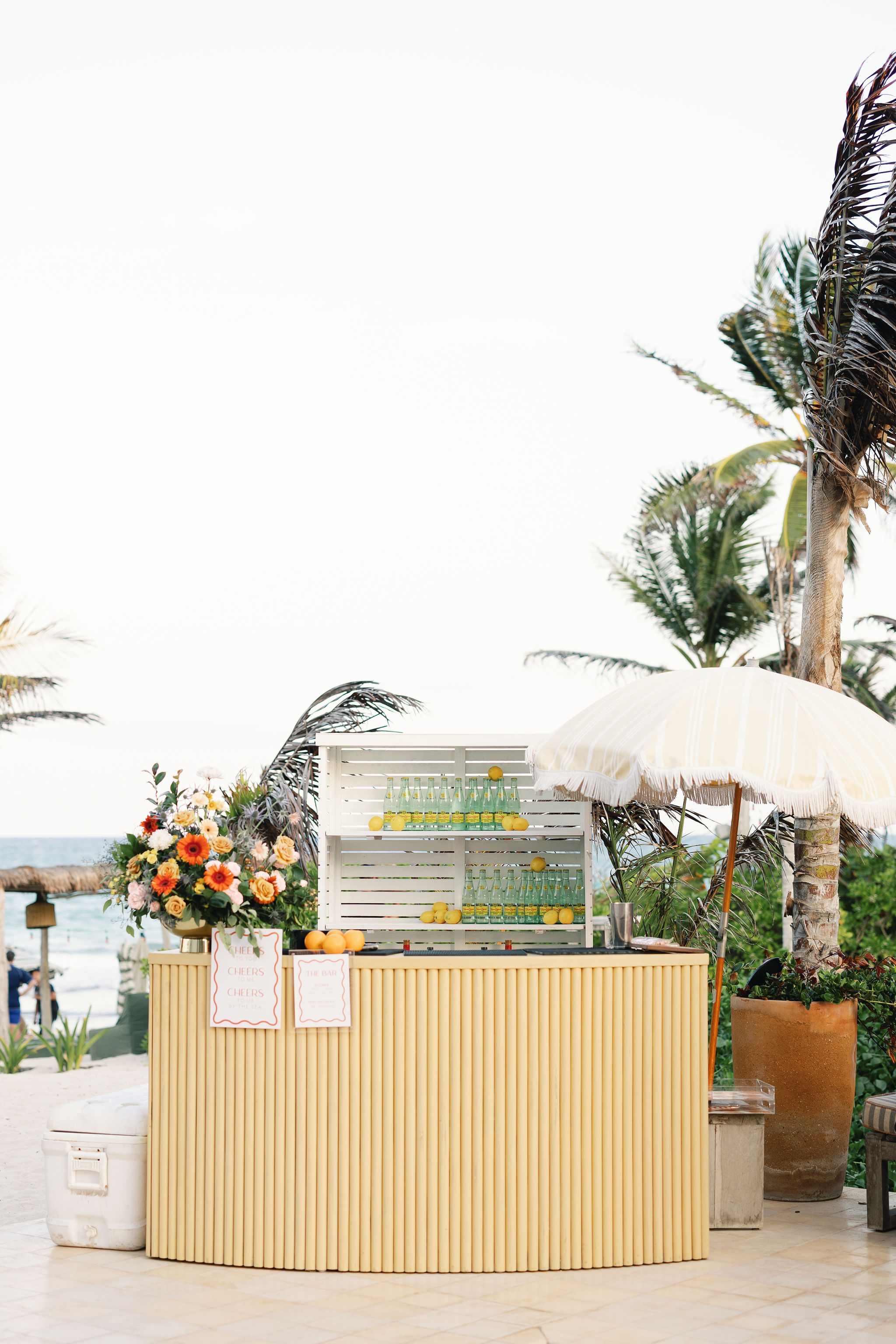 The poolside bar was an absolute highlight, radiating sunny, citrusy vibes. Stacked with refreshing Topo Chico bottles and pops of vibrant yellow lemons, the setup exuded simplicity and charm, perfectly complementing the relaxed Tulum ambiance.