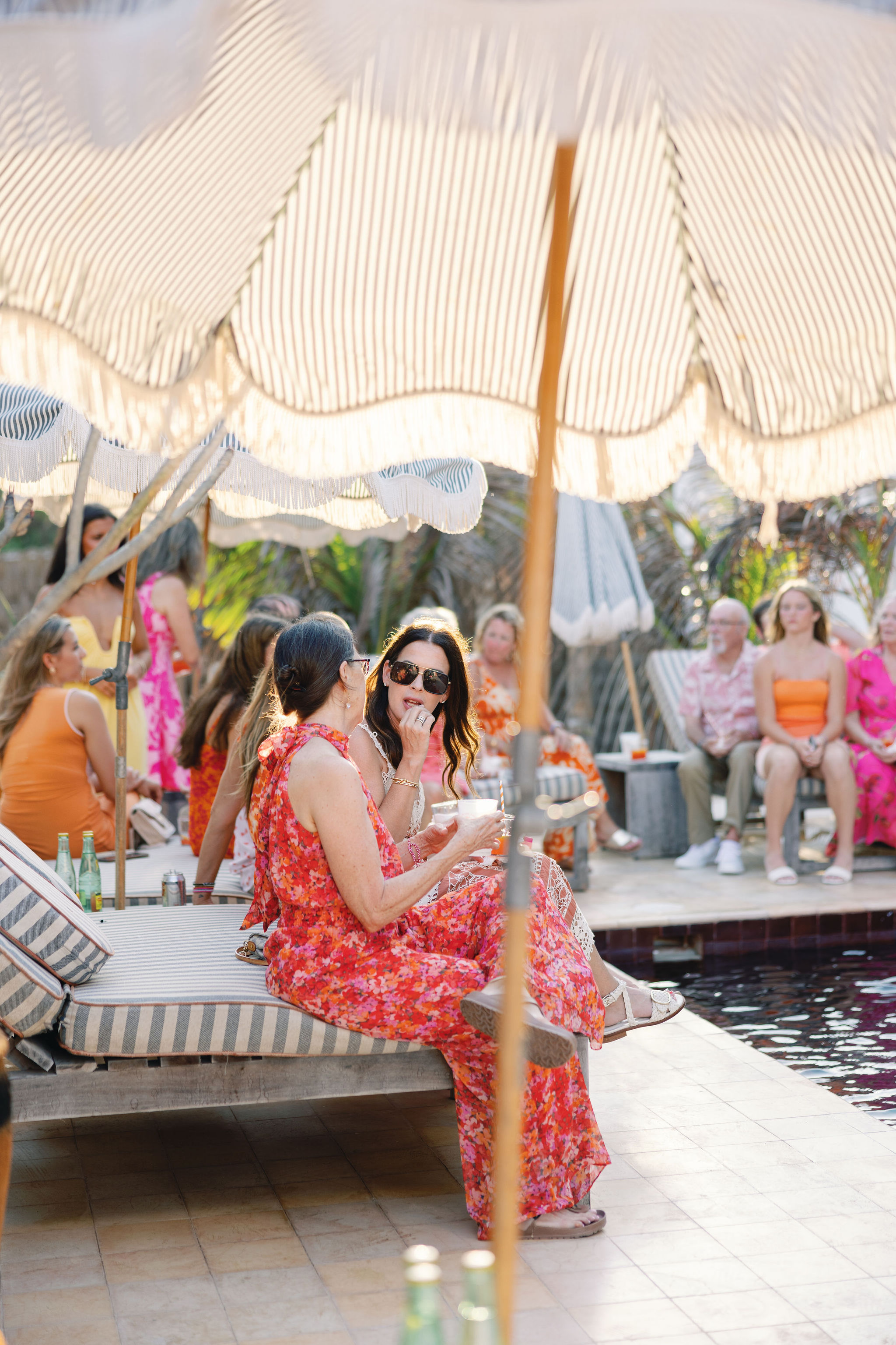 Sloane and Cam give a really cool Welcome Party at the Pool of Panamera Hotel in Tulum, the couple have the cool idea of asking their guests to attend with a “sunset” palette colors to start the Day 1 in an amazing wedding weekend in the jungle and beach Tulum.