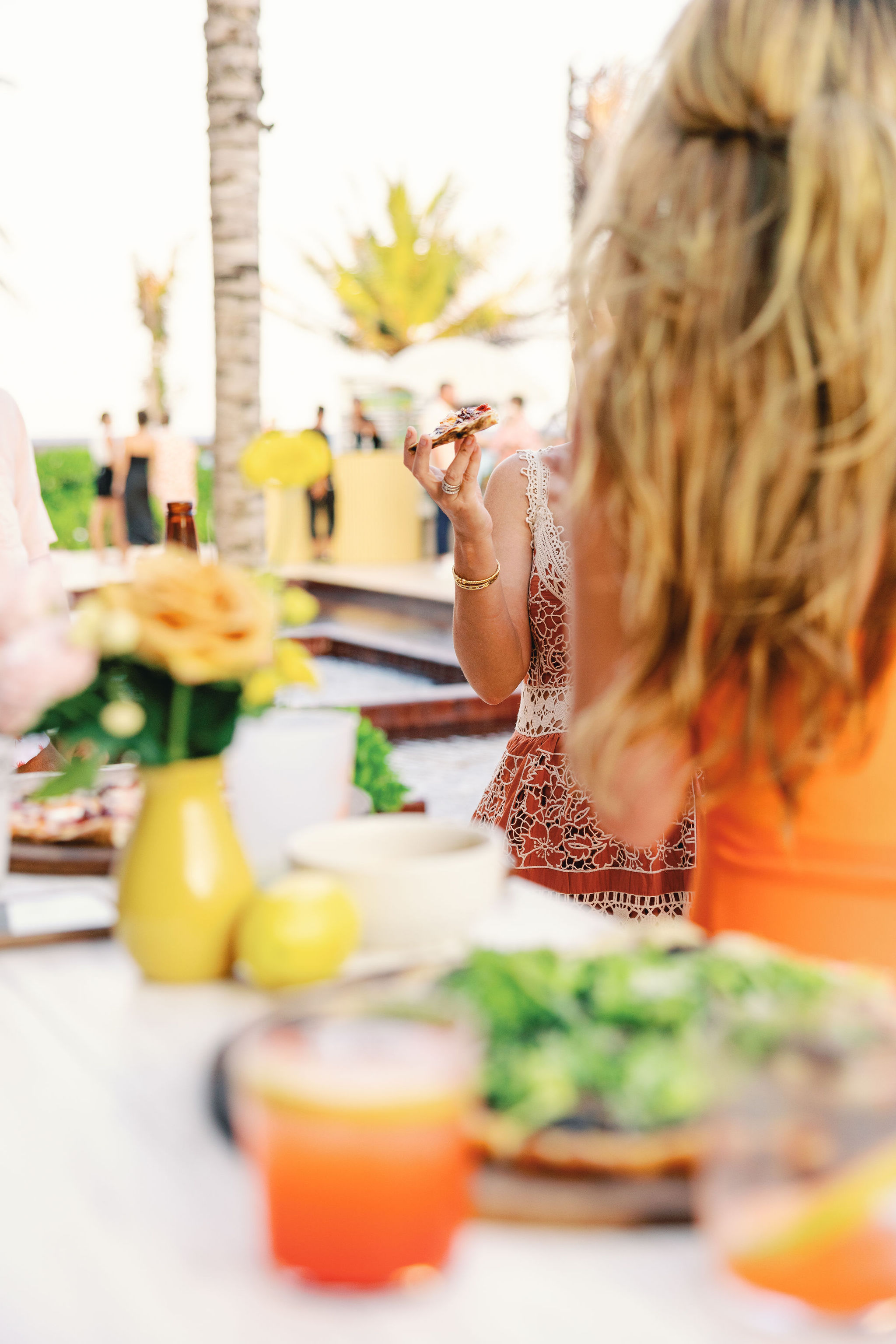 The poolside bar was an absolute highlight, radiating sunny, citrusy vibes. Stacked with refreshing Topo Chico bottles and pops of vibrant yellow lemons, the setup exuded simplicity and charm, perfectly complementing the relaxed Tulum ambiance, also with lovely drinks and handmade pizzas.