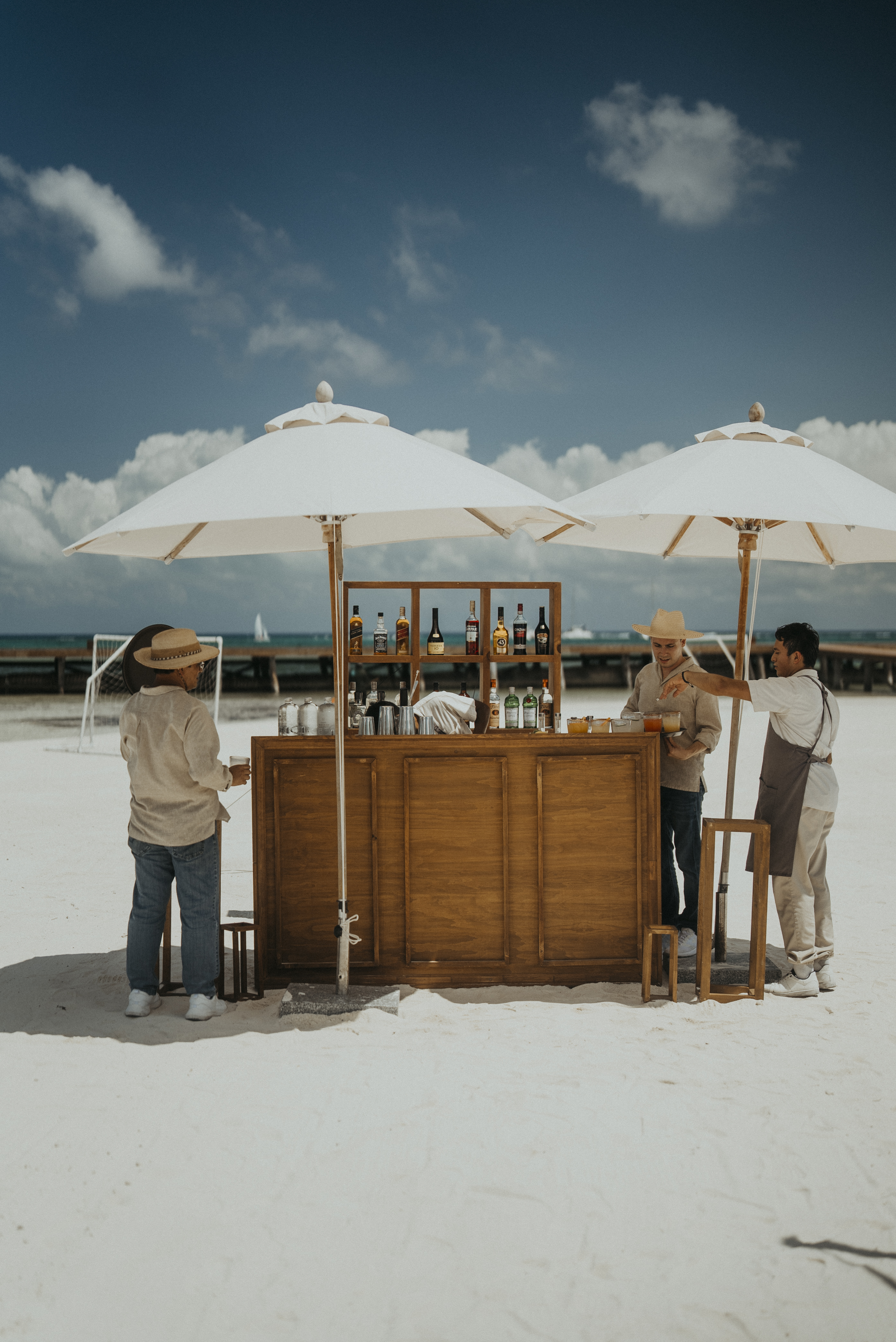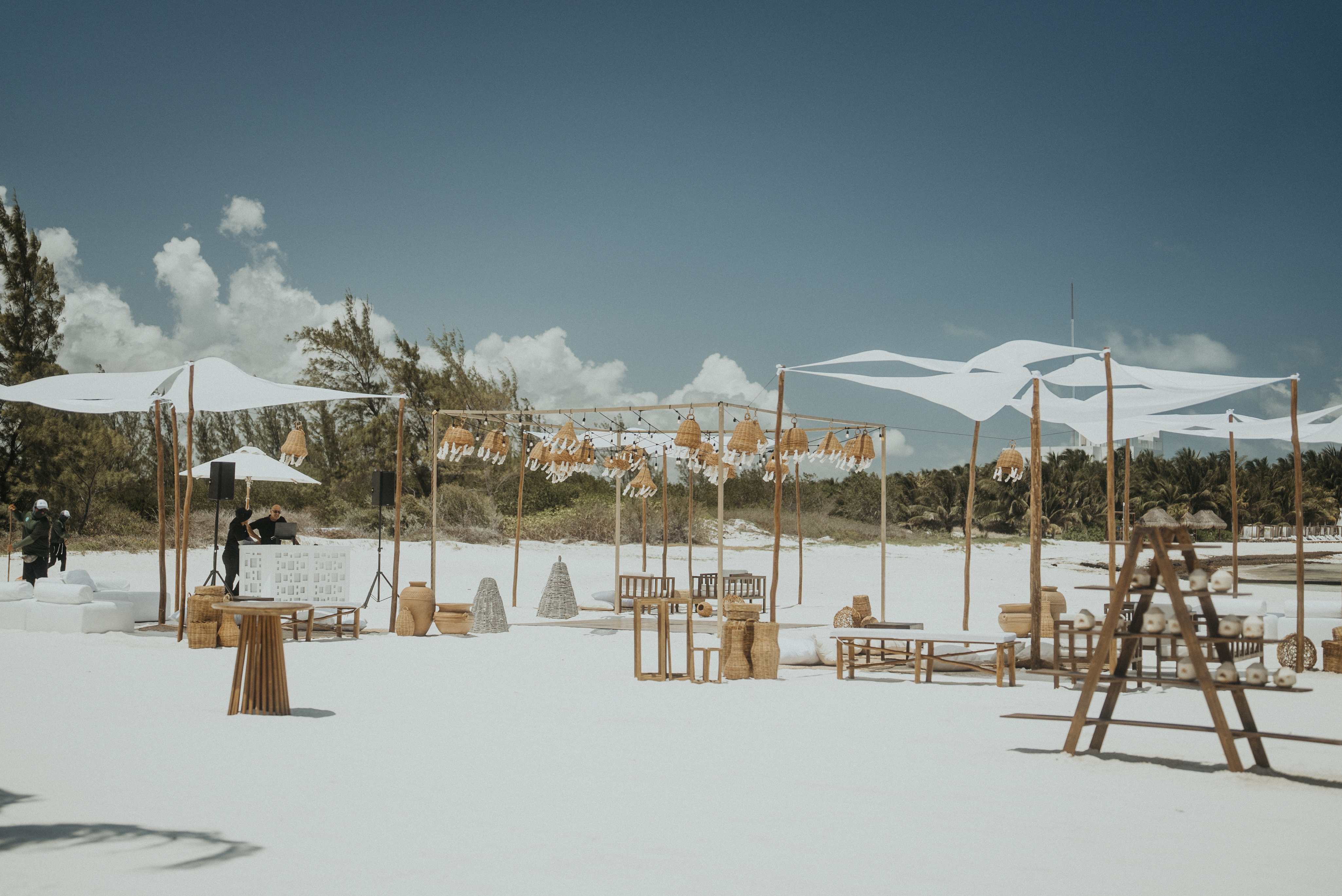 For the second day, we have our own private beach party, we make from 0 these really cool structures with fabric and lounges all around, so the guests can chill around, go to the beach and dance near by the dj; with a menu with ceviches, guacs and more, they celebrated a great party until the sunset!!
